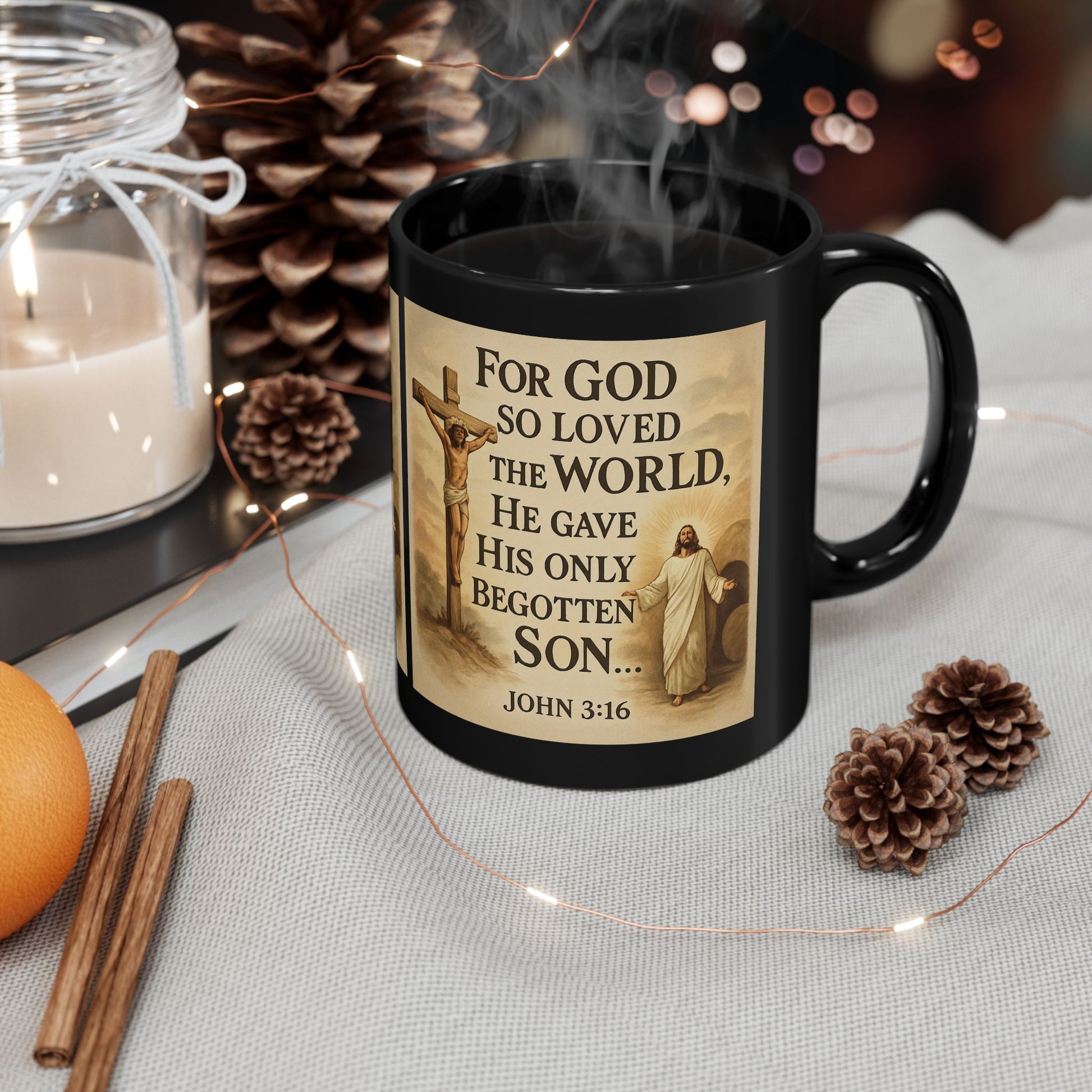 Christian Faith Mug — John 3:16 Scripture Coffee Cup (Black, 11oz/15oz)