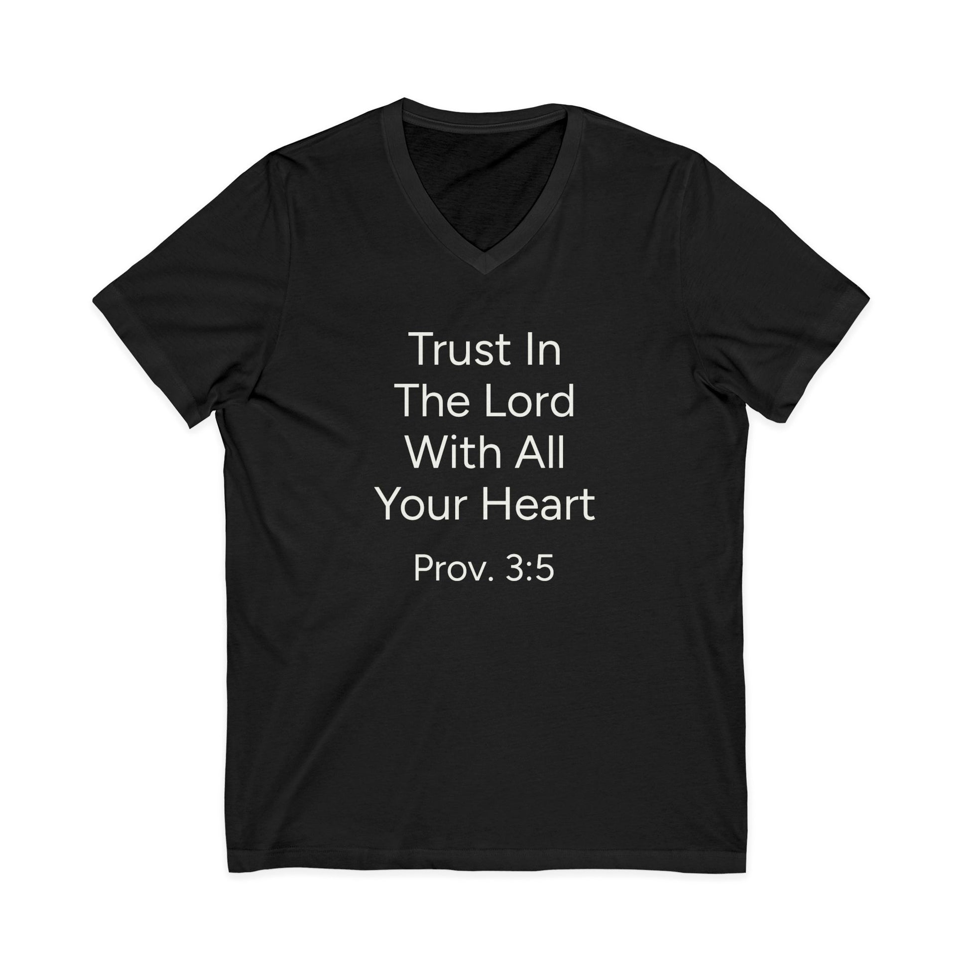 This Christian Inspirational V-Neck Tee is a perfect reminder to 'Trust In The Lord With All Your Heart.' It offers a comfortable and stylish silhouette, making it suitable for casual or semi-formal settings. This unisex tee is relevant for those seeking faith-inspired apparel and is perfect for religious holidays or as a gift for someone in need of encouragement.