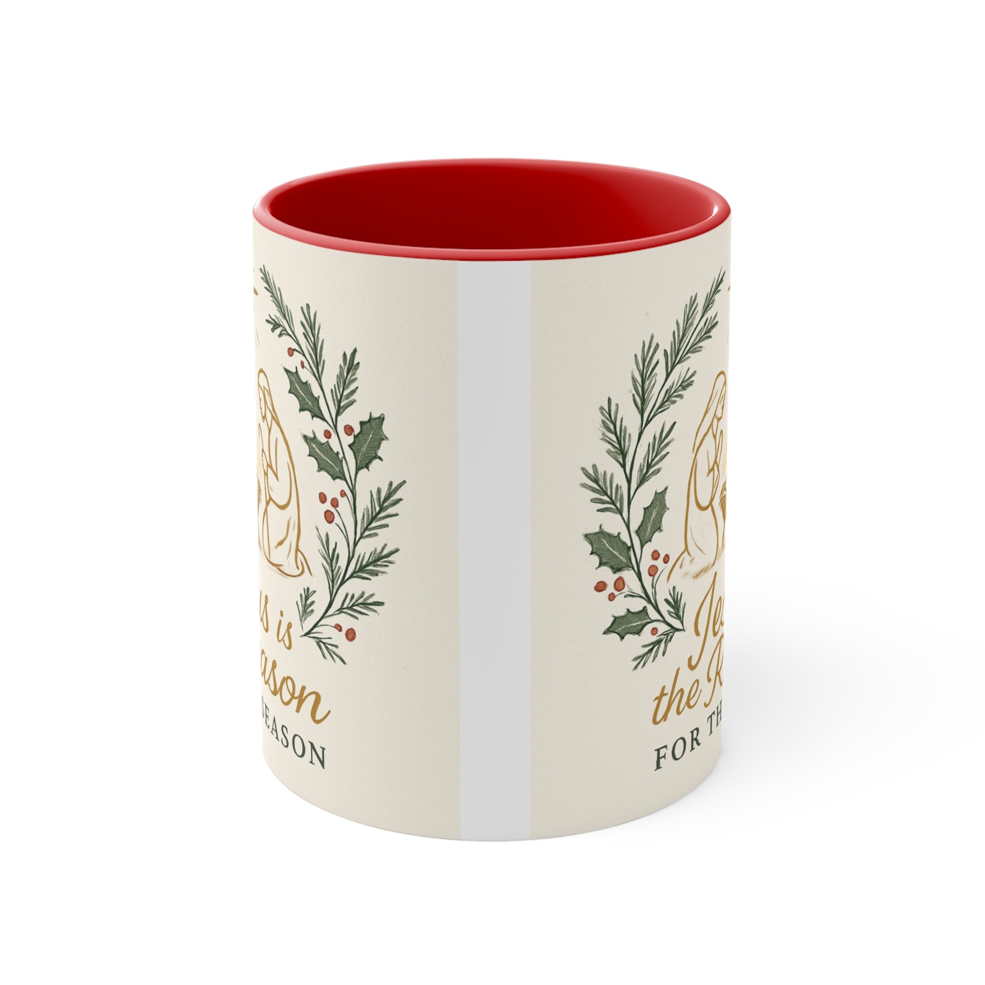 Celebrate the reason for the season with this Christmas Nativity Accent Mug featuring Jesus. The vibrant colors and festive design create a warm and inviting atmosphere, perfect for enjoying your favorite hot beverages during the holidays. This mug is relevant to Christians celebrating Christmas and looking to add a religious touch to their daily routine.