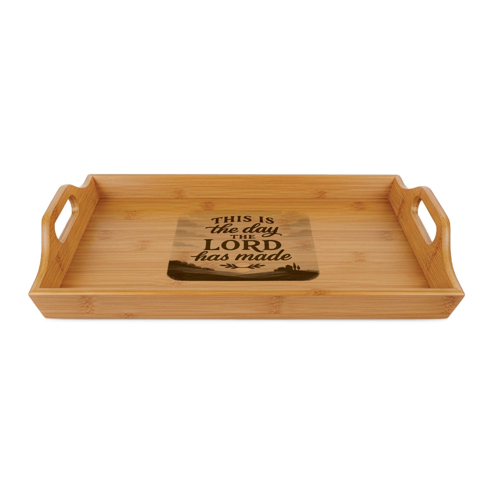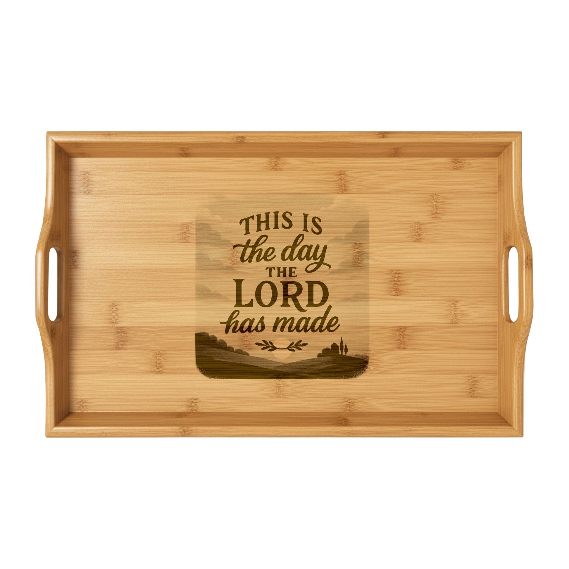 Engraved Bamboo Serving Tray — "This Is The Day The Lord Has Made" Religious Tea & Coffee Tray