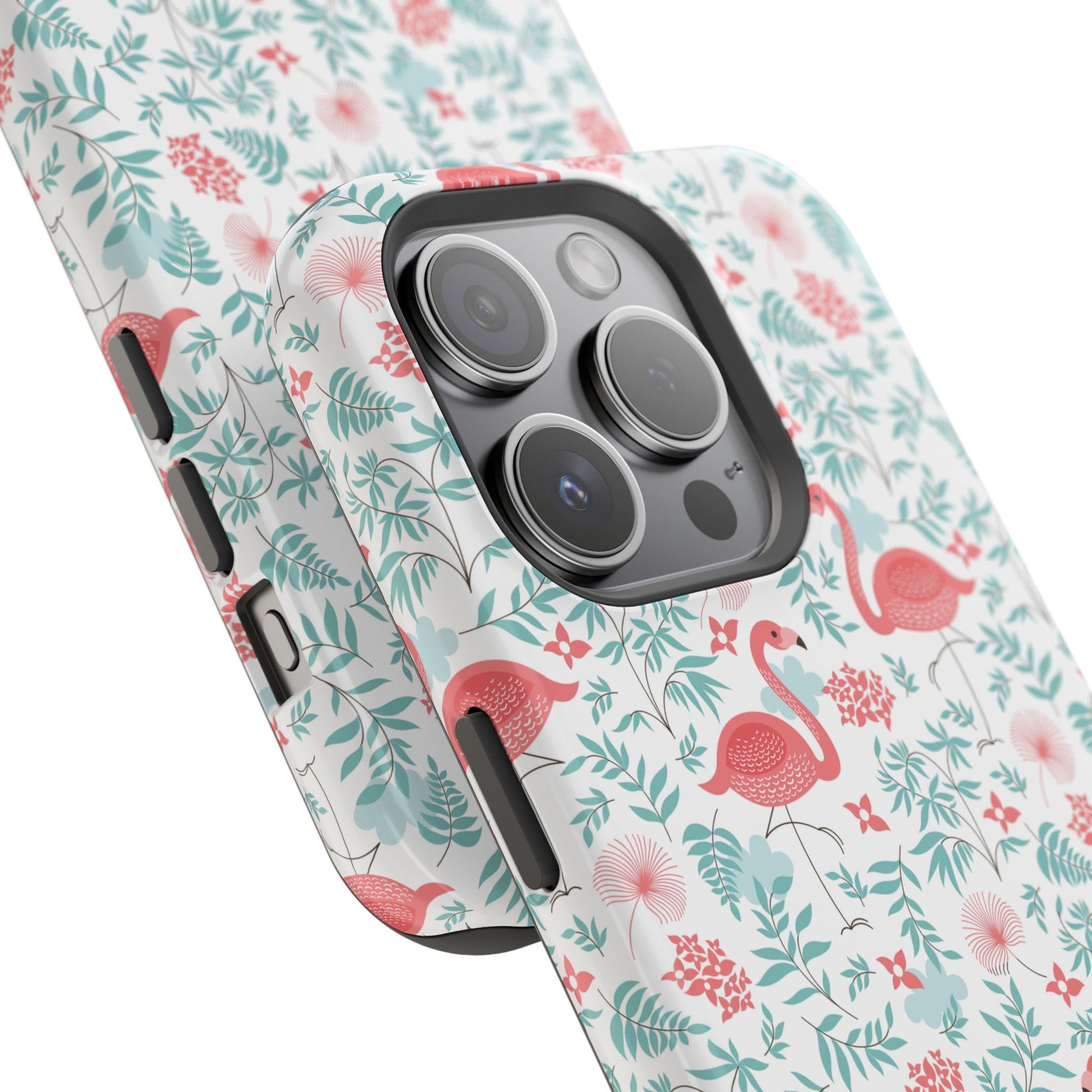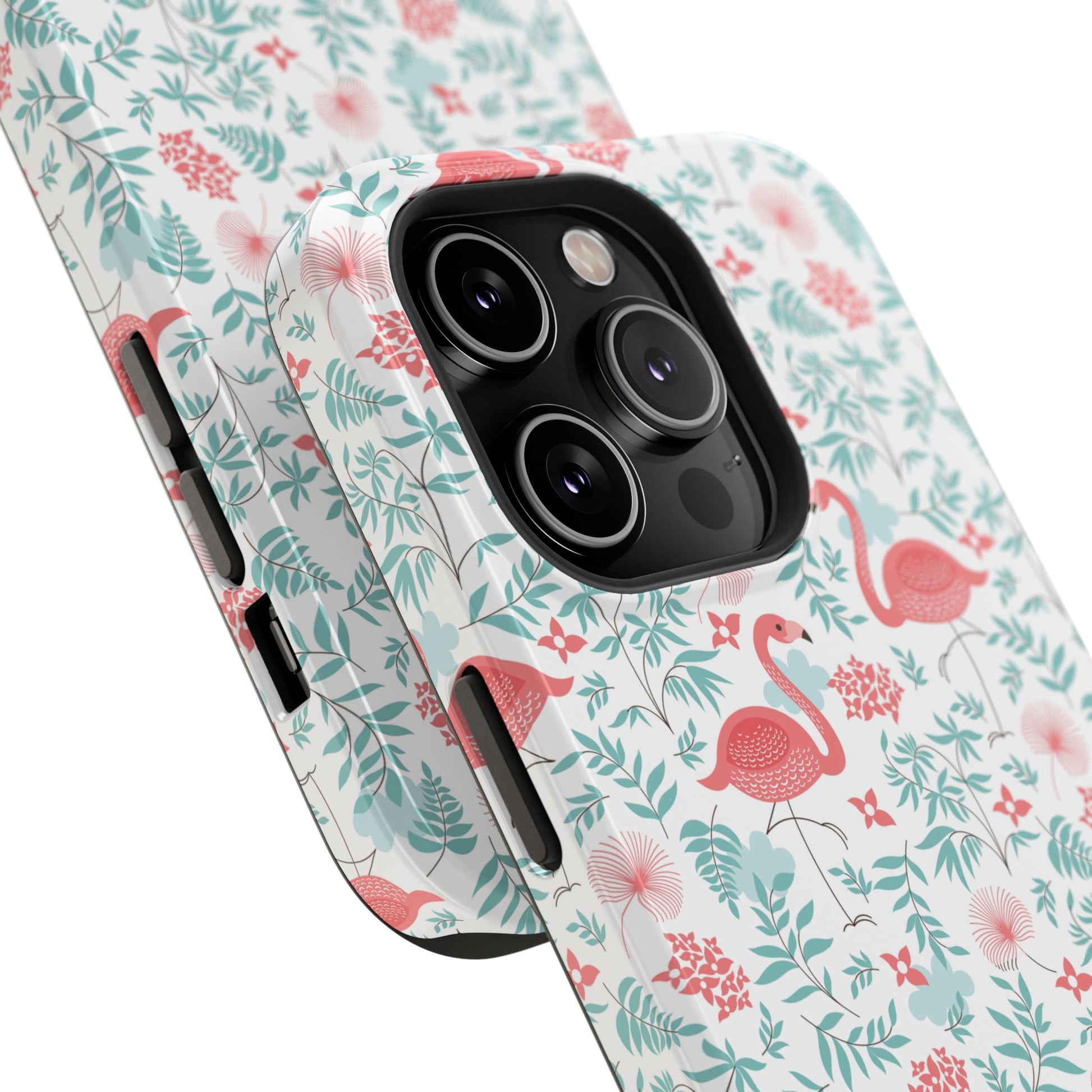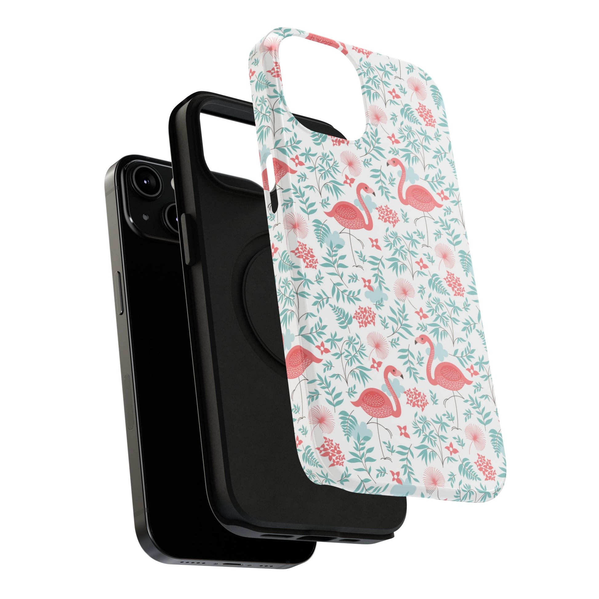 Flamingo Floral Impact Phone Case — Shockproof Protective Cover with Pink Flamingo & Botanical Pattern