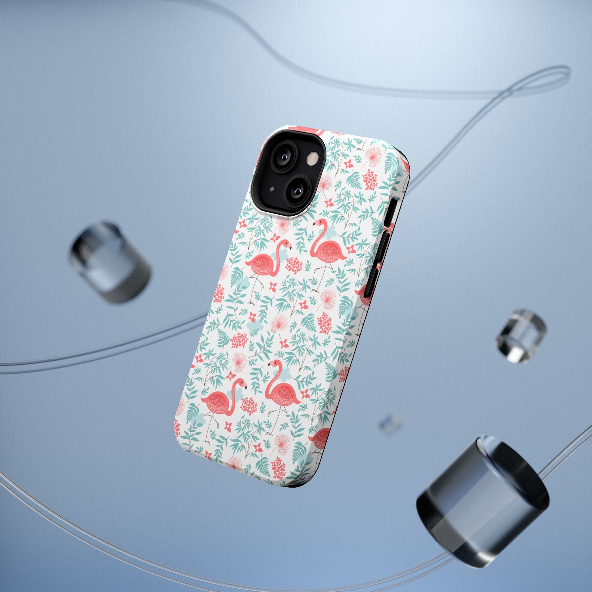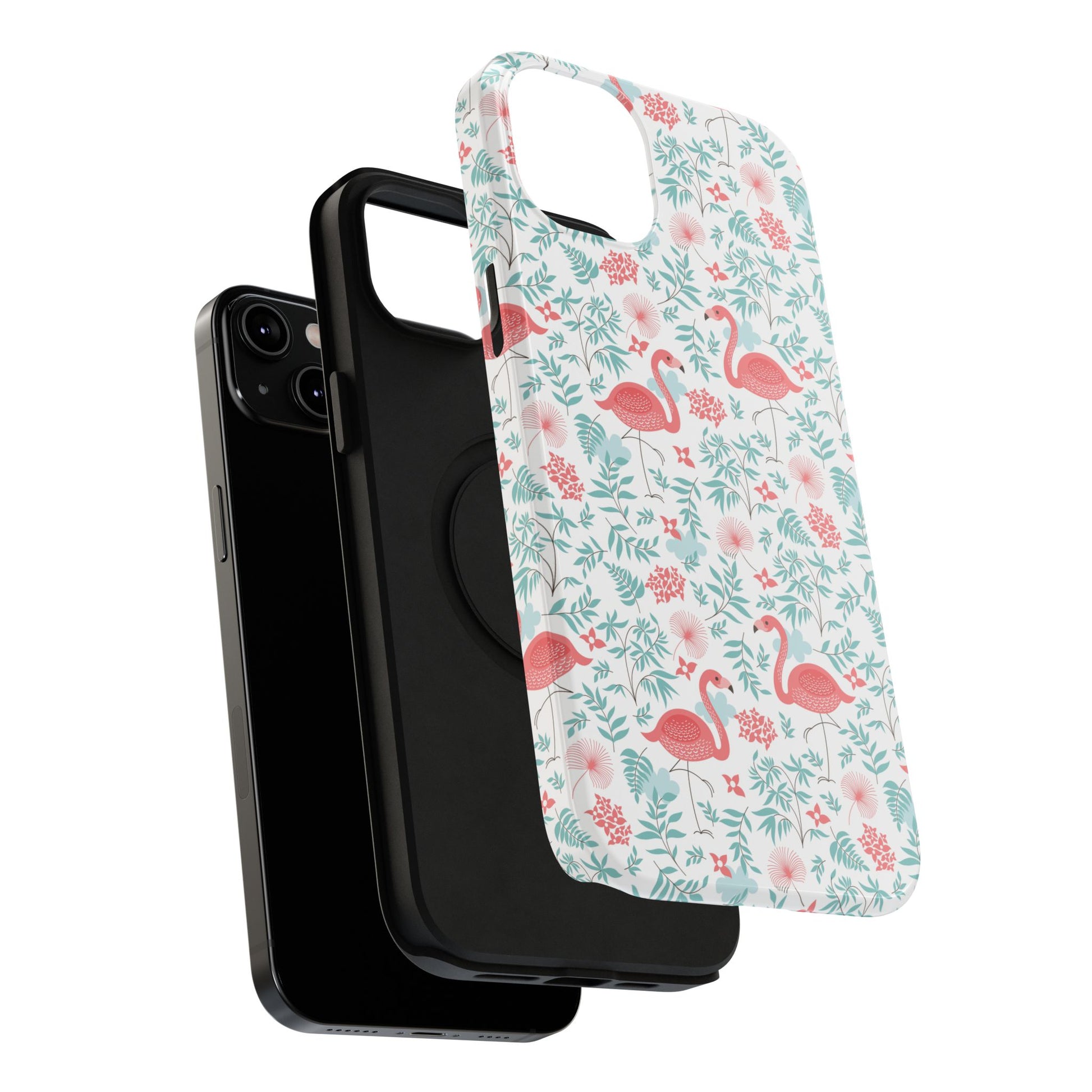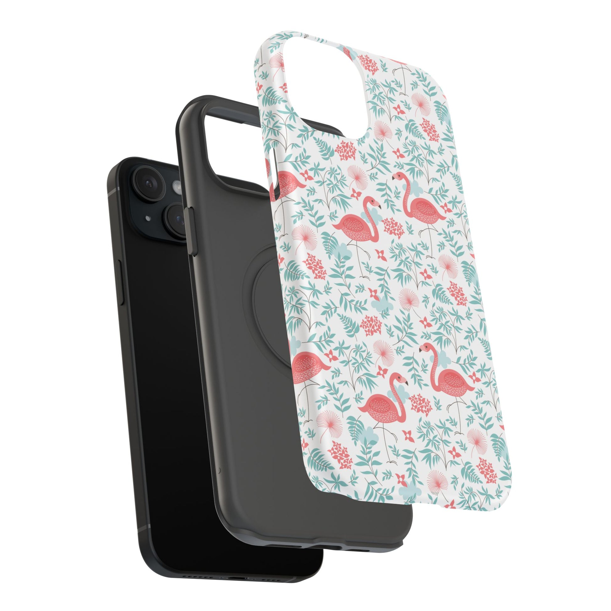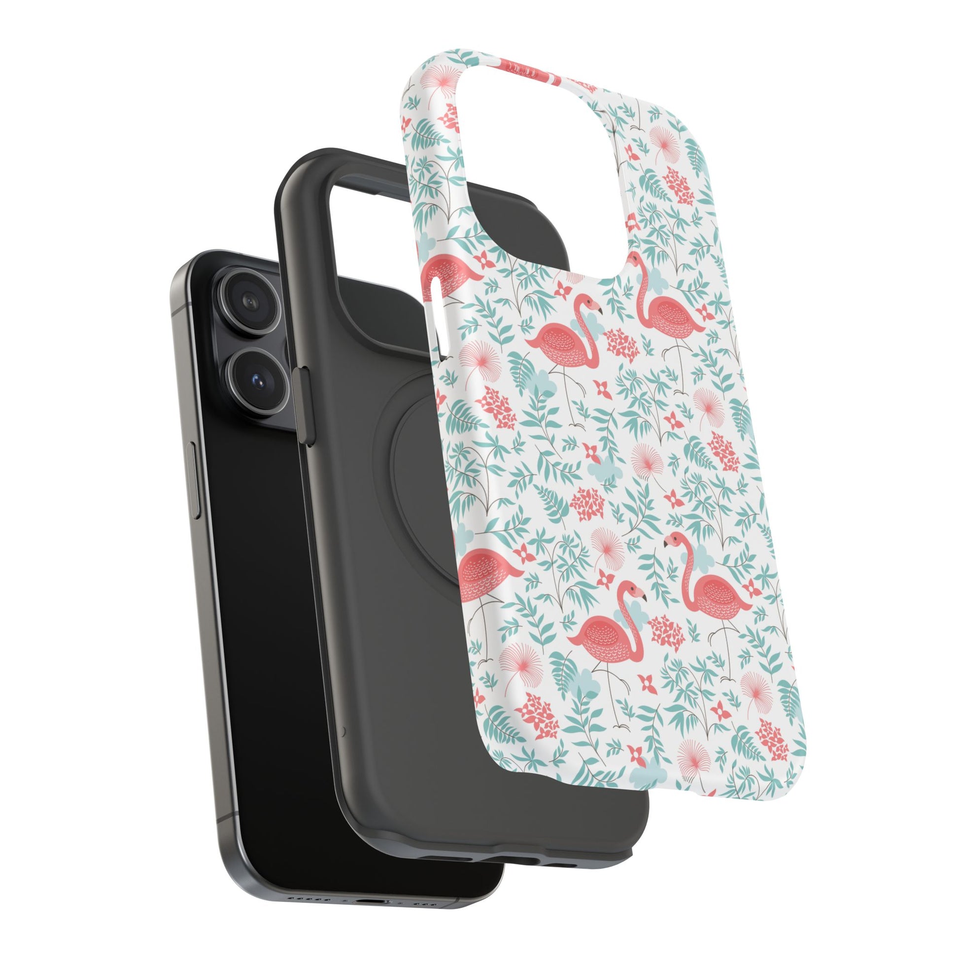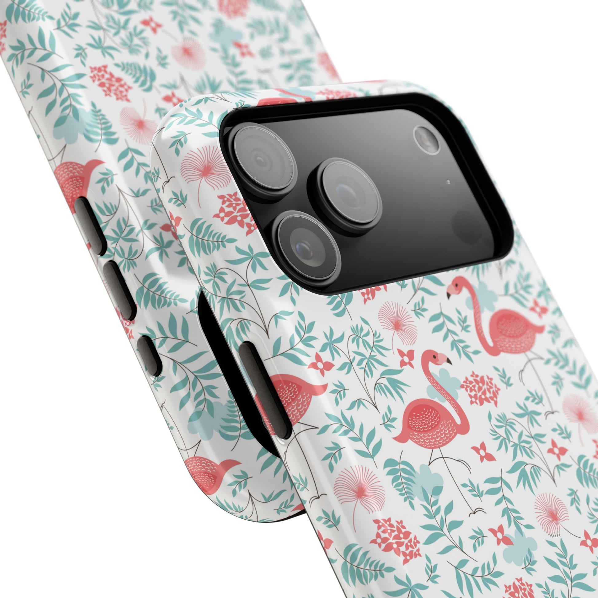 Carry a little sunshine and seaside charm with you every day. This impact-resistant phone case wraps your device in a playful flamingo-and-floral pattern rendered in soft coral and mint tones. The full-wrap print keeps the design continuous across edges, so the whimsy flows around the phone. The dual-layer construction — a rigid polycarbonate shell with a flexible TPU inner layer — absorbs knocks while preserving a slim profile. Choose glossy for a bright, reflective finish or matte for a subdued, velvety feel. It’s the kind of accessory that brightens a commute, slips easily into a beach bag, and sparks compliments when friends spot the cheerful print.