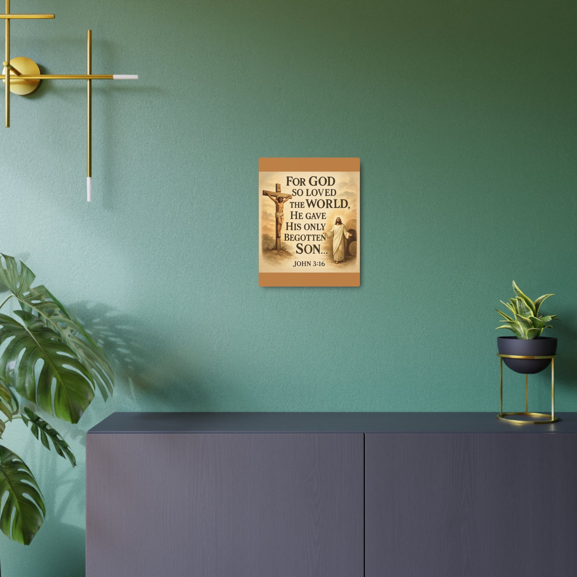 This metal art sign brings a quiet, reverent presence to any room. The simple script—"God So Loved the World"—rests on a durable aluminum panel with a soft matte finish that reduces glare and highlights the wording. Lightweight yet sturdy, the piece hangs cleanly on a wall once the included mounting block is assembled. It reads like a steady reminder: a pause in the morning, a breath before bedtime, or a gentle anchor during prayer. For people who lean on faith in their daily rhythms, the sign fits naturally into living rooms, entryways, prayer corners, or church fellowship spaces. The range of sizes and orientations lets you place a small plaque on a bookshelf or make a quiet statement above a mantel. It’s crafted for indoor spaces where reflection and home feel matter most.