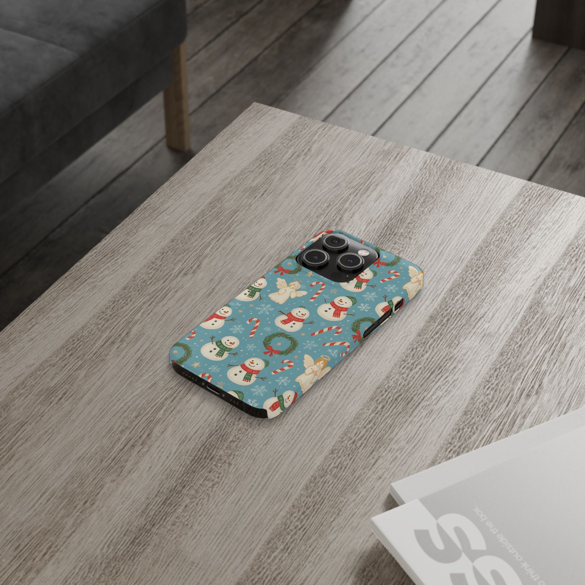 Holiday Snowman Slim Phone Case — Cute Christmas Candy Cane & Wreath Pattern