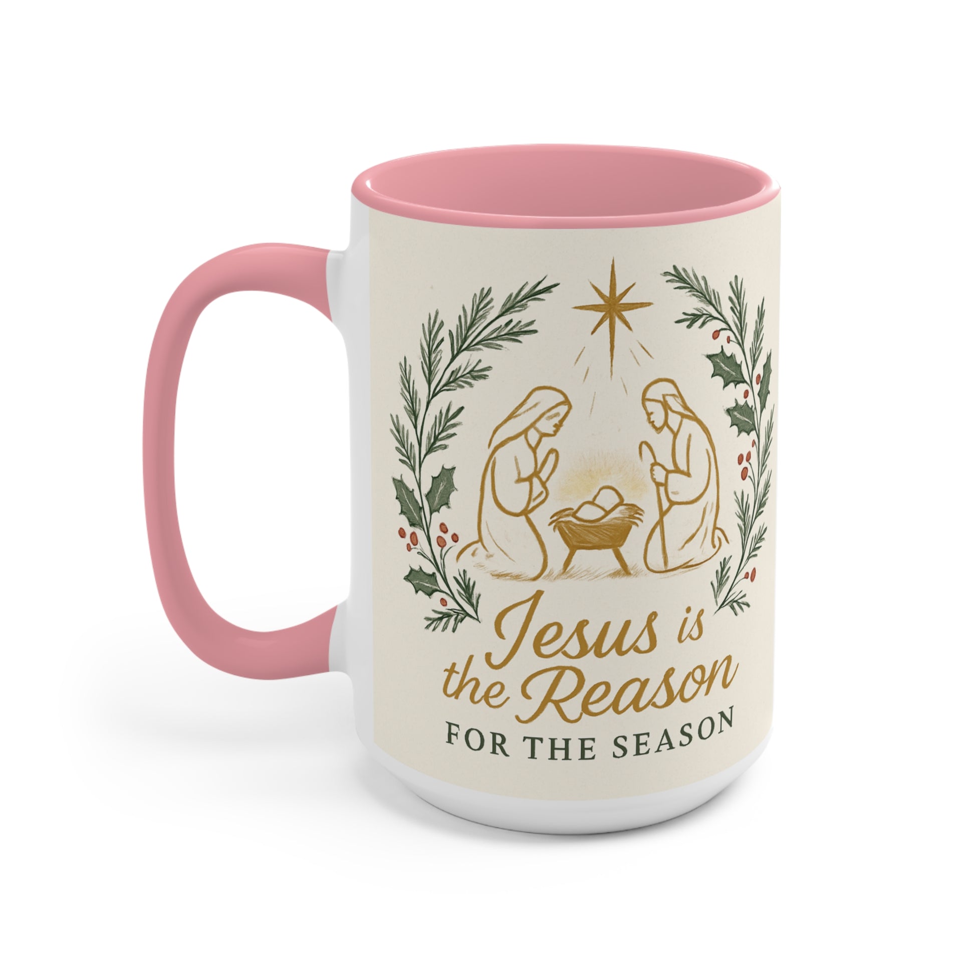 Jesus Is the Reason Accent Mug — Nativity Christmas Coffee Cup (15oz)