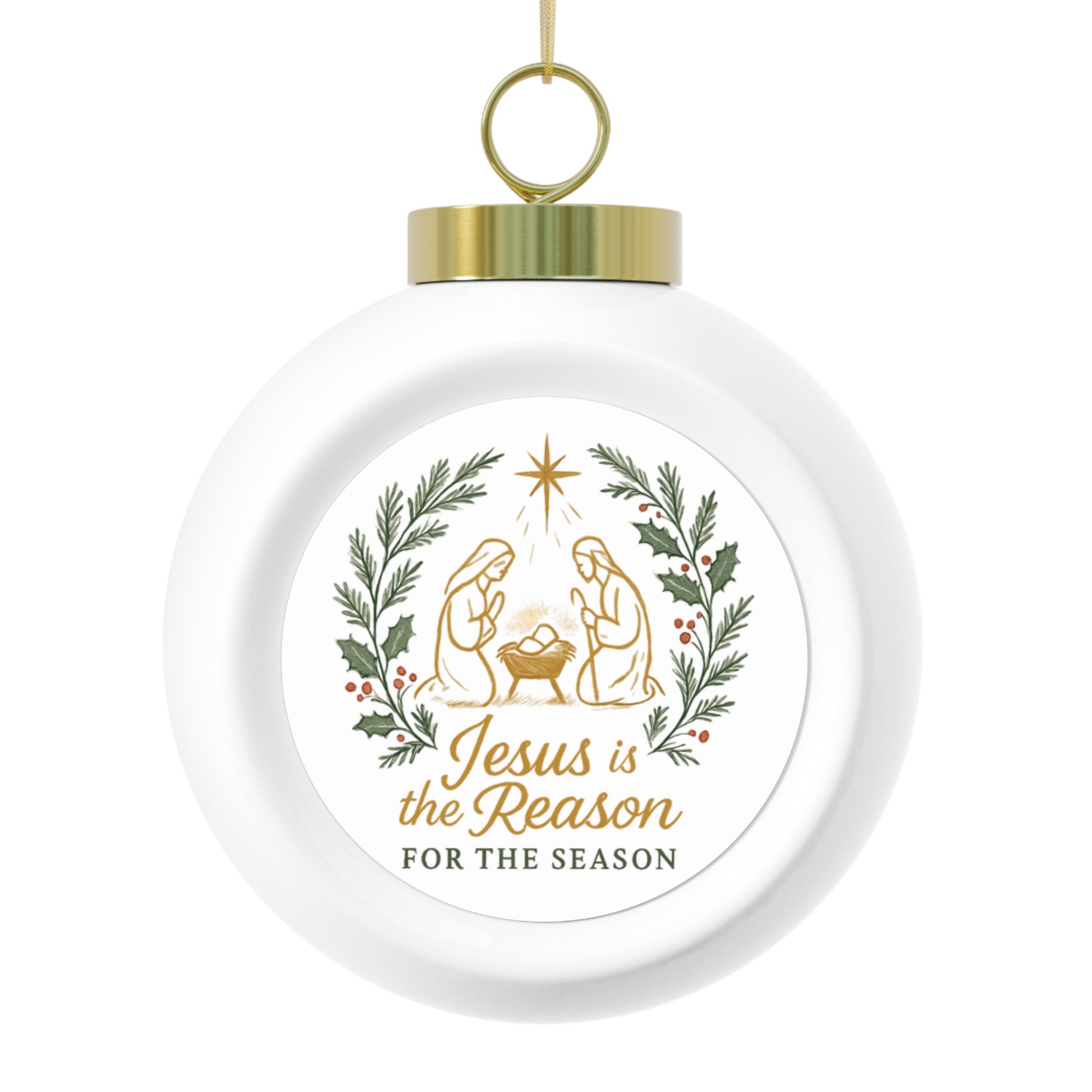 Jesus Is the Reason Christmas Ball Ornament — Nativity Religious Holiday Decoration